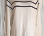 - Nautica Cream White/Black Stripe Raglan Sleeve Pullover Light Knit Sweater Large