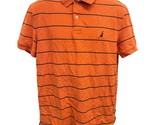 - Nautica Deck Polo Mens L Orange Stripe Performance Cotton Short Sleeve Shirt