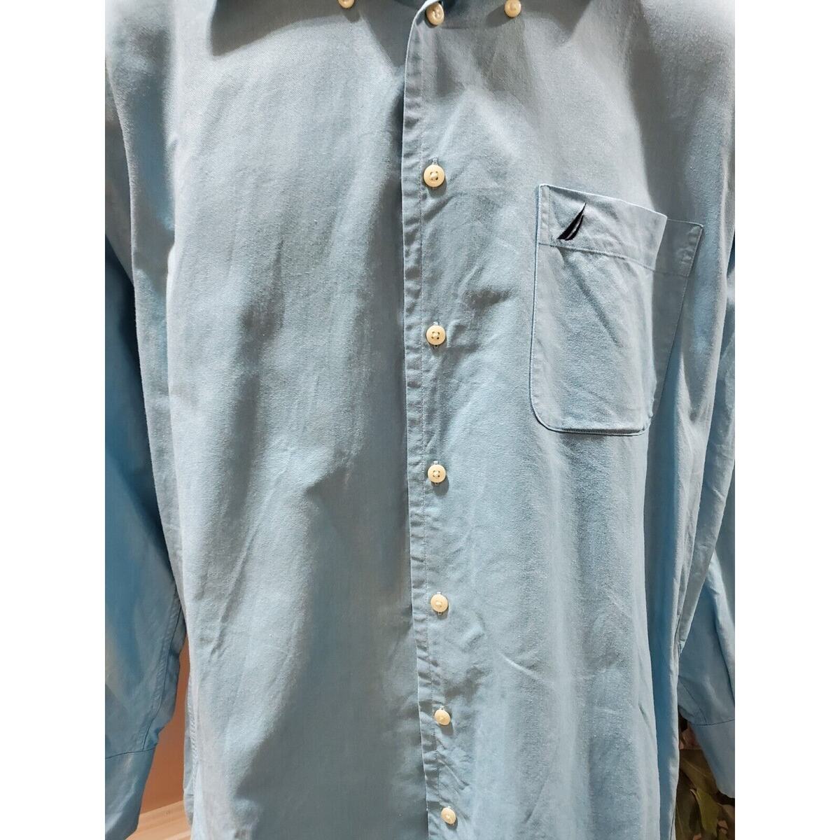 - Nautica Men's Blue Cotton Long Sleeve Collared Buttons Down Casual Shirt 15.5