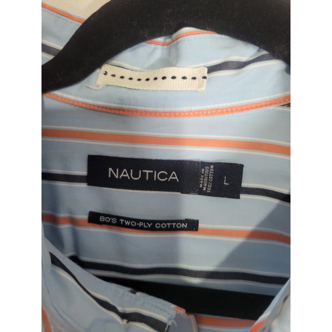 - Nautica Mens Dress Casual Shirt Long Sleeve Button Down L Blues Orange