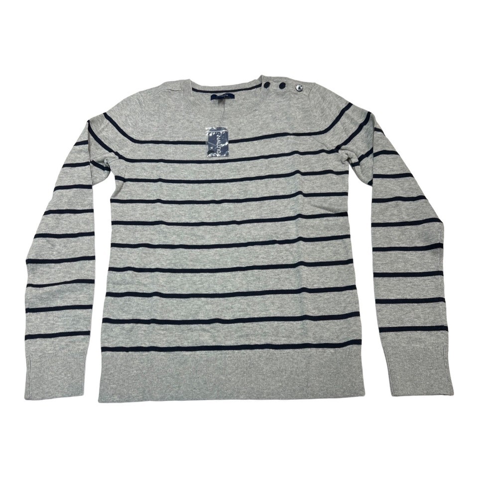 - Nautica Sweater Womens XS Gray Blue Striped Boat Neck Pullover Nautical Preppy