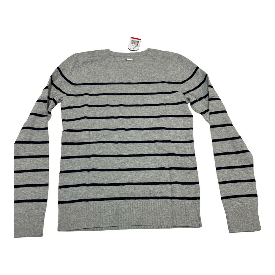Nautica Sweater Womens XS Gray Blue Striped Boat Neck Pullover Nautical Preppy
