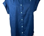 Nautica Women's Navy Blue Linen Blend Short Sleeve Button Up Camp Shirt
