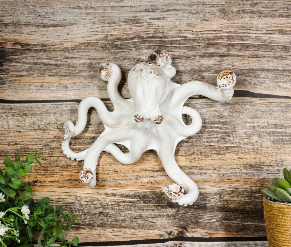 Nautical Marine Antique White Giant Octopus Multi Point Tentacles Wall Hooks
