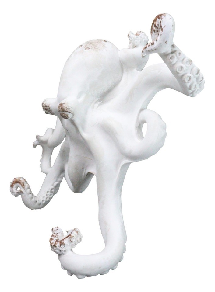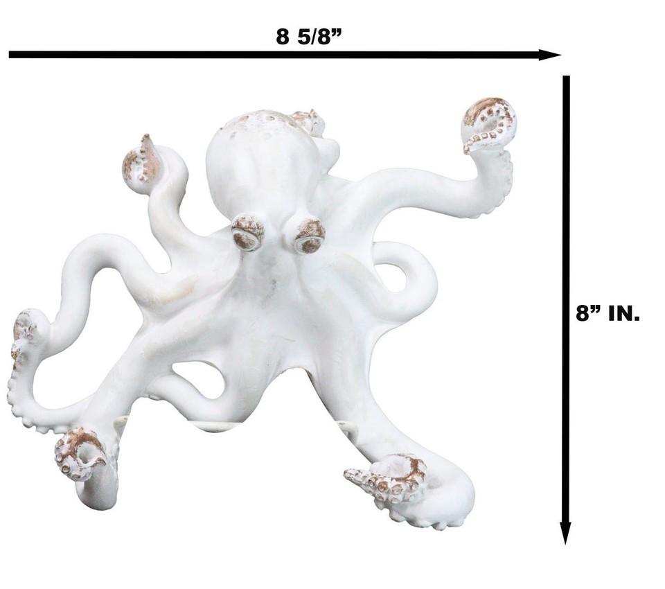 ? Add a nautical touch to your home with the Antique White Octopus Multi-Point Wall Hooks. This unique piece features an intricately designed octopus with tentacles reaching out to form functional hooks, perfect for hanging keys, leashes or towels. The rustic, distressed white finish gives it an aged, weathered look that blends coastal charm with artistic flair. Whether you're looking to add character to your entryway, bathroom, or any space in need of functional decor, this octopus wall hooks will not disappoint!