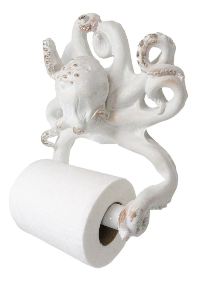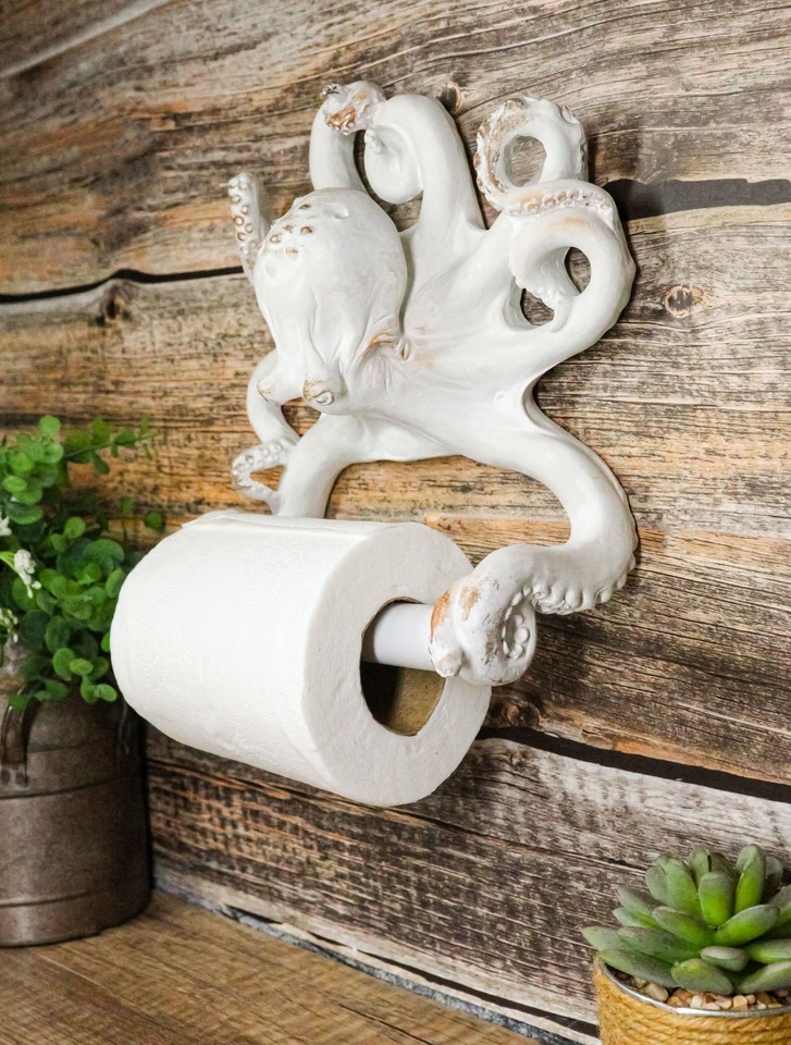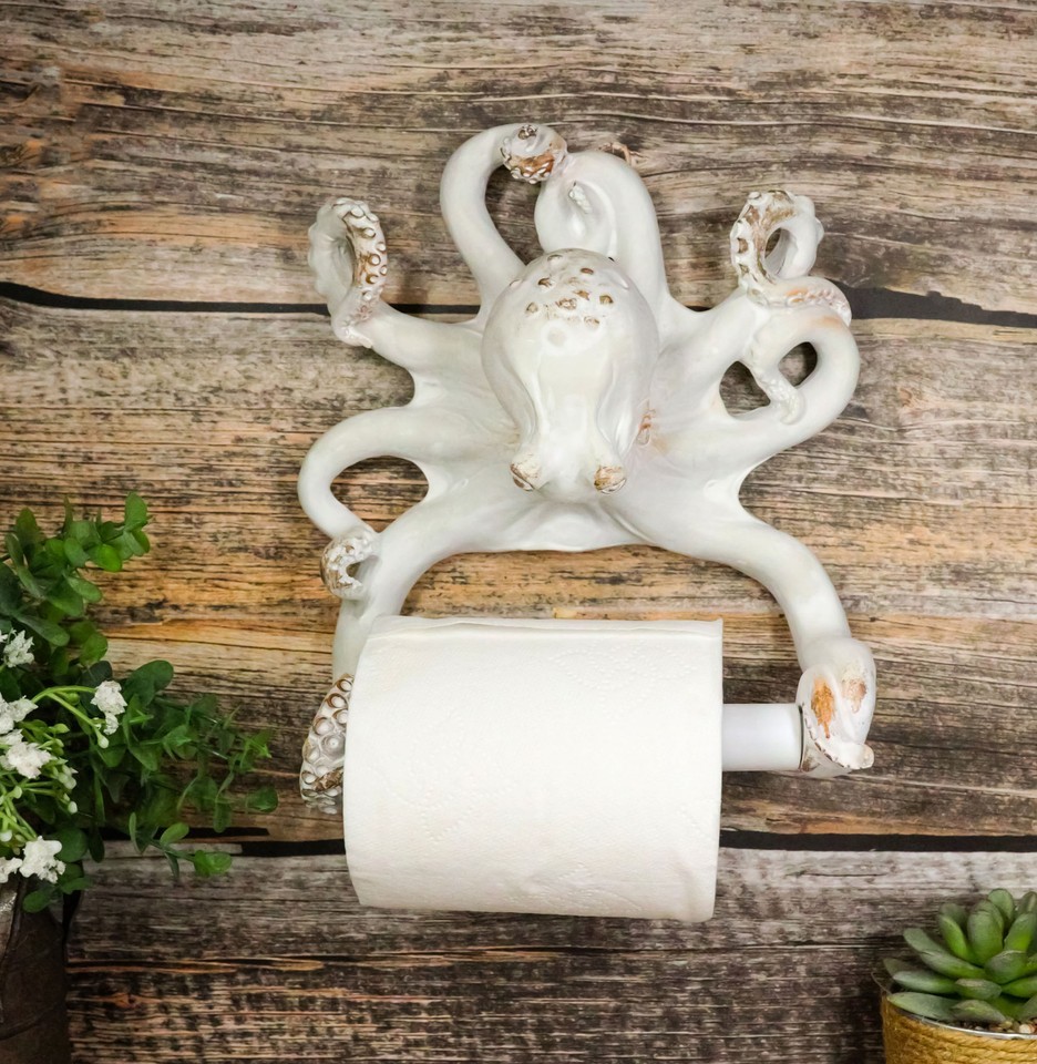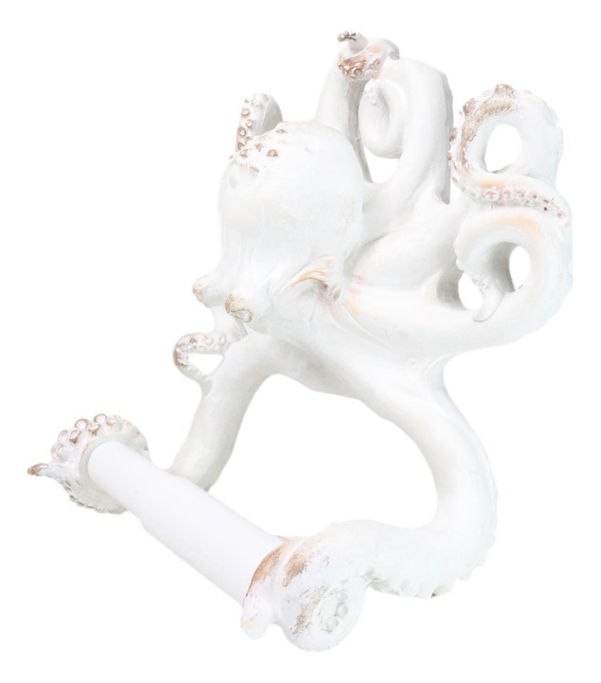 - Nautical Marine Sea Octopus Distressed Antique White Wall Toilet Paper Holder