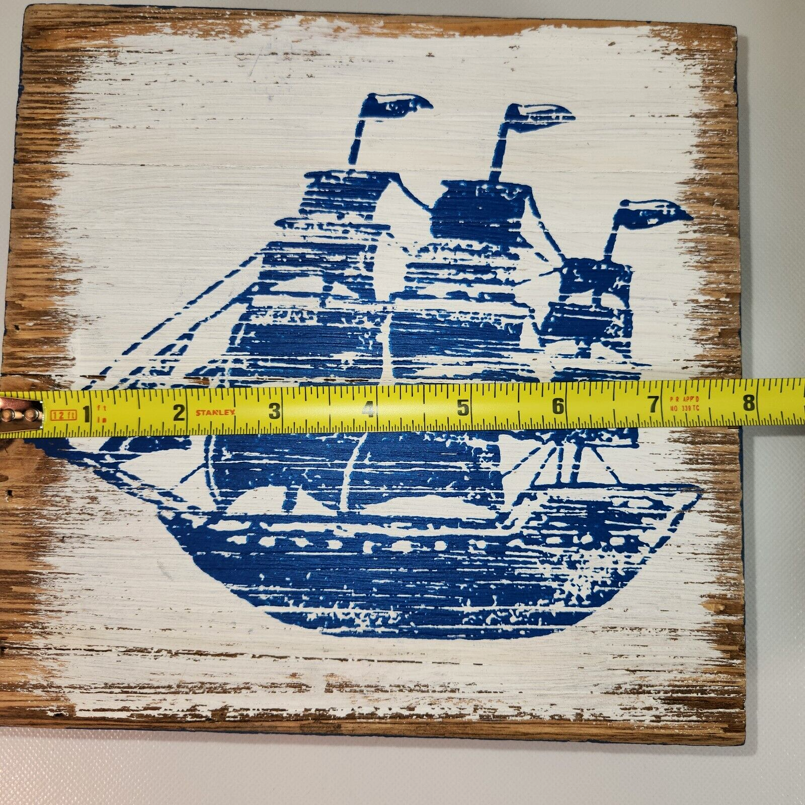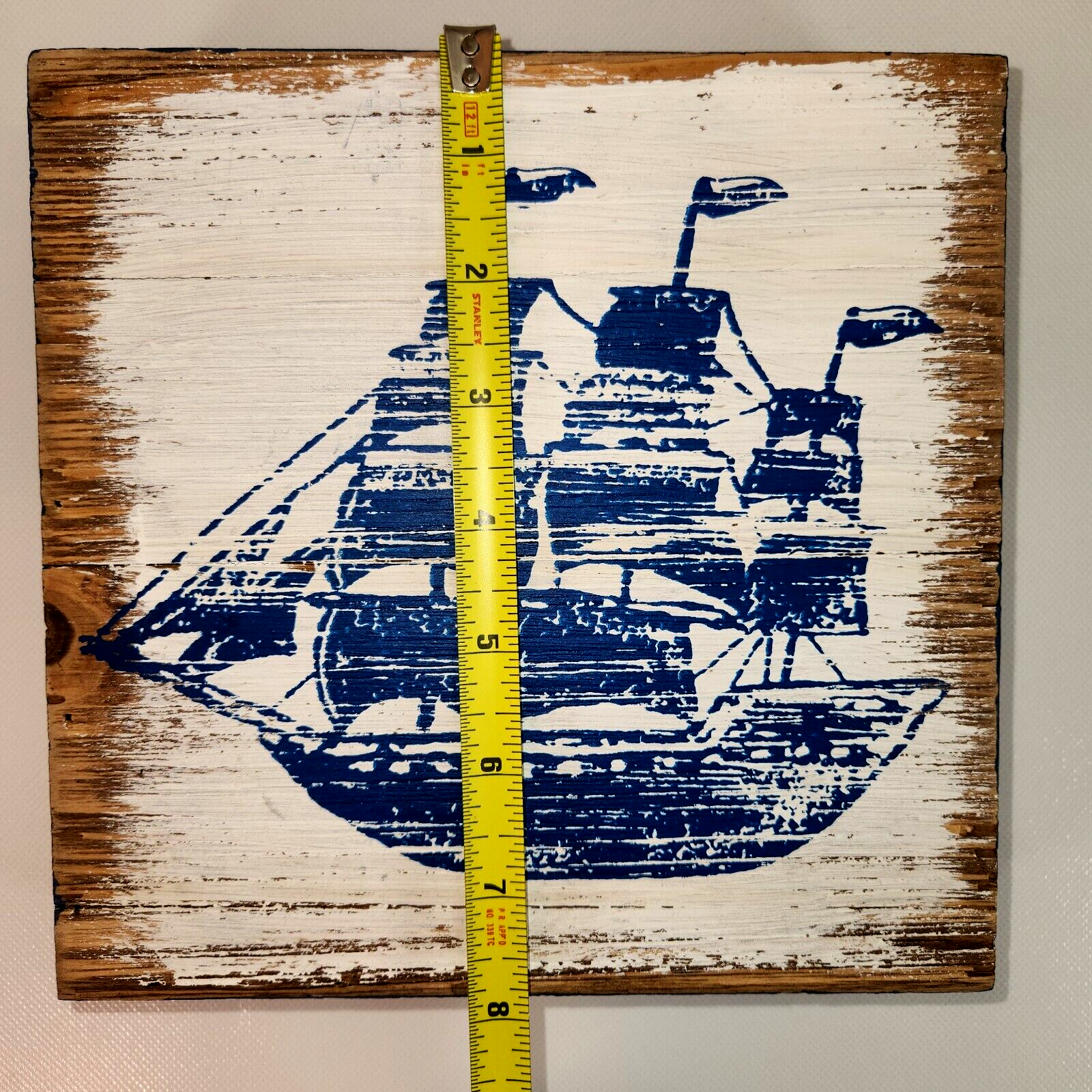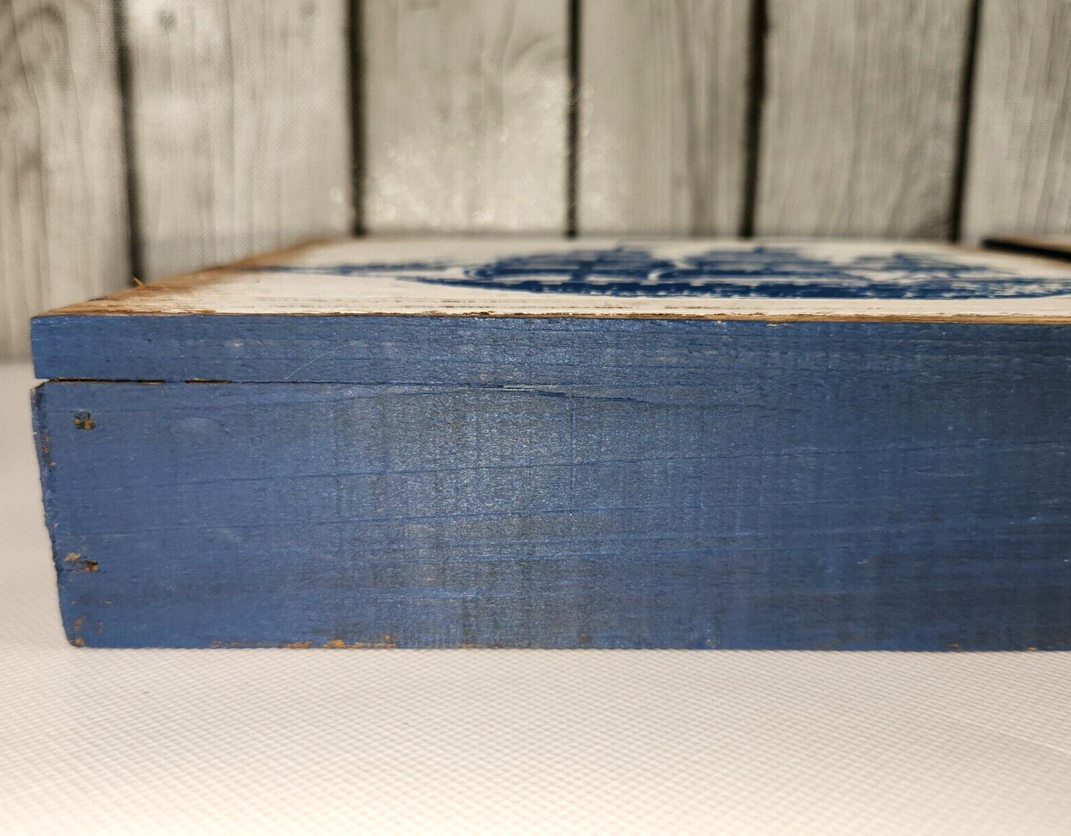 ? Painted blue and white wood with weathered coastal style