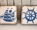 Nautical Wall Decor Ship Wheel & Sailboat Set 8in Blue Wood Hobby Lobby Pair