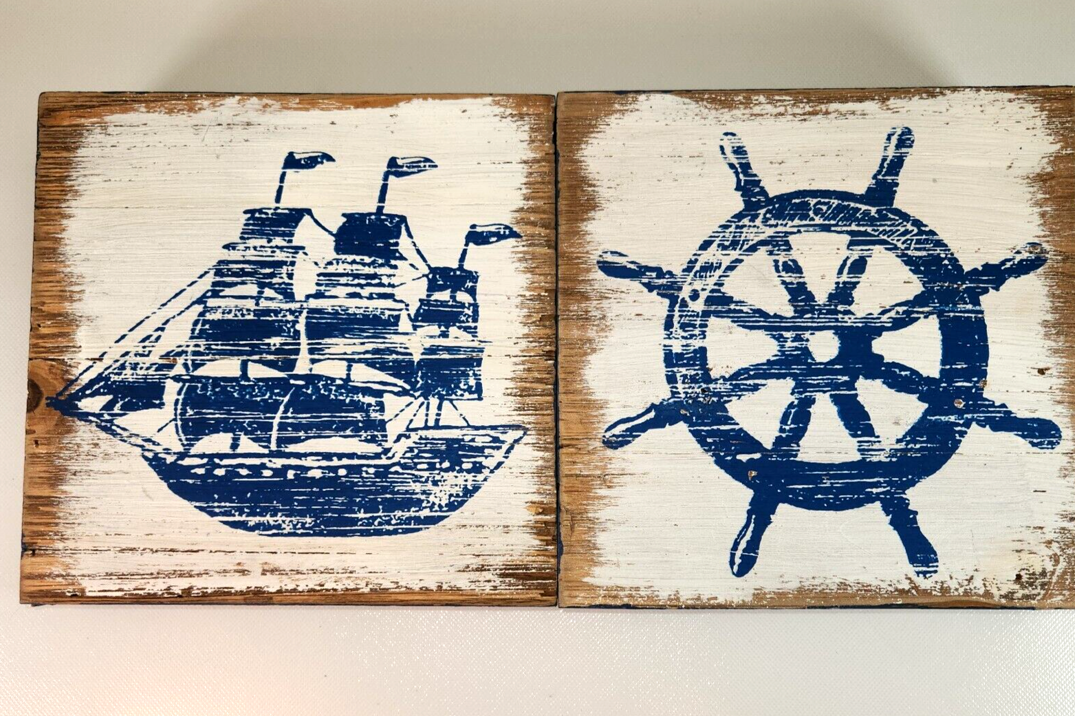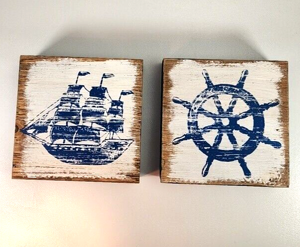 - Nautical Wall Decor Ship Wheel & Sailboat Set 8in Blue Wood Hobby Lobby Pair