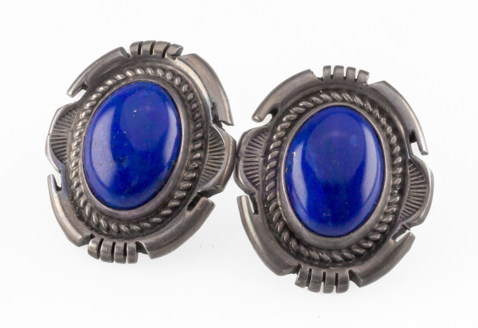 Artiste Navajo Jon McCray IMHSS Blue Lapis Sterling Silver Orees Boucles de 27 mm de haut