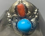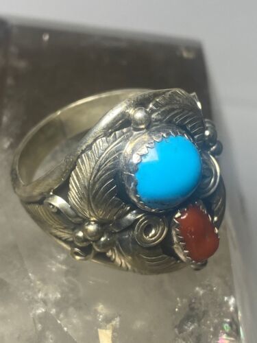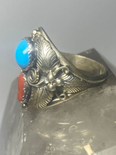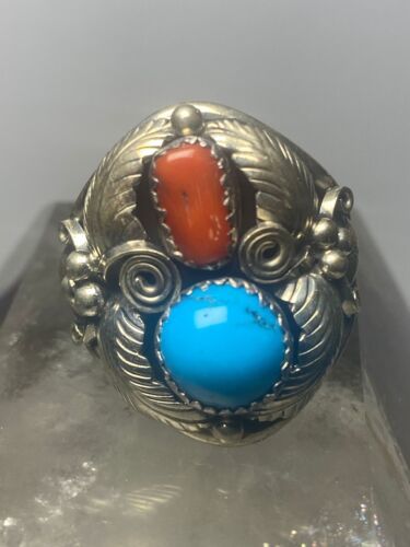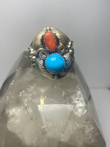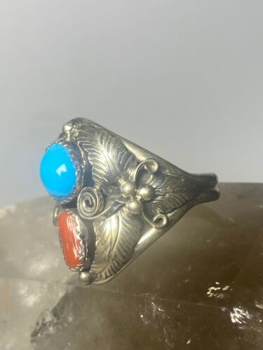 - Navajo ring coral turquoise band sterling silver women men q