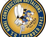 The Navy Seabees Round Cut Metal Sign is an original collectible item featuring a militaria theme. Made in the United States, this sign is a unique piece for collectors interested in military memorabilia. The design and craftsmanship of this sign would appeal to both veterans and enthusiasts of military history, making it a standout addition to any collection.