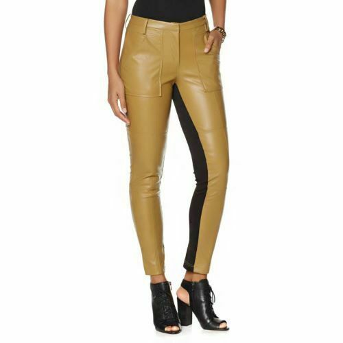 - NeNe Leakes Fab Faux Leather Pocket Zip Cargo ANTIQUE MOSS Tan Women's Pants