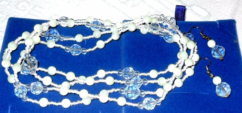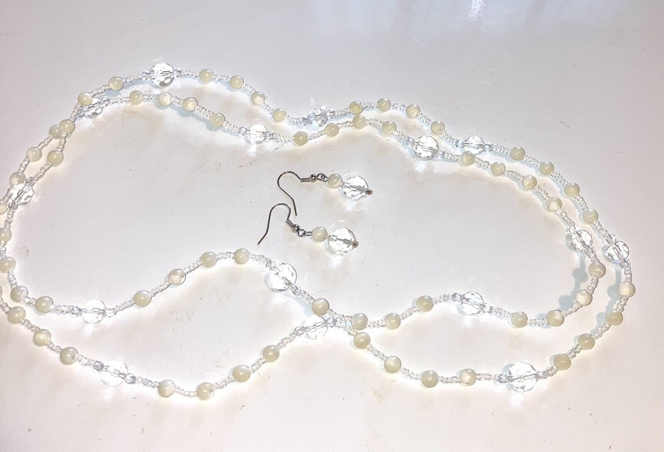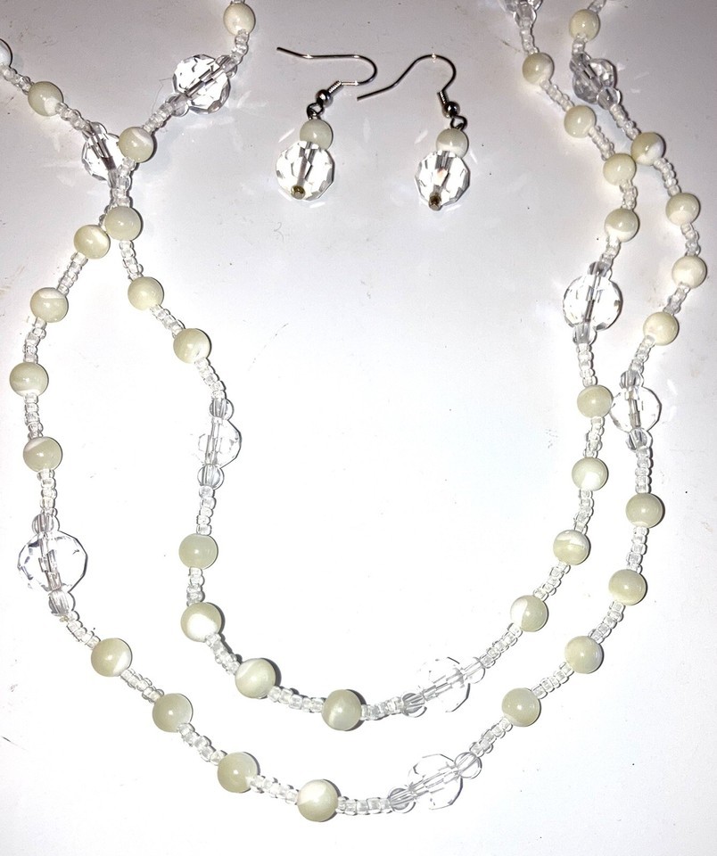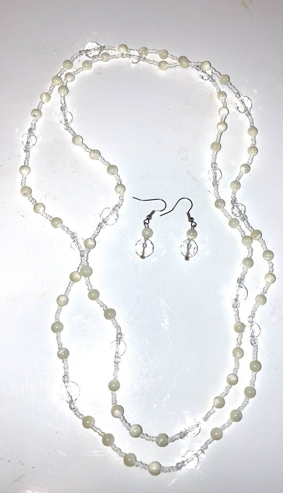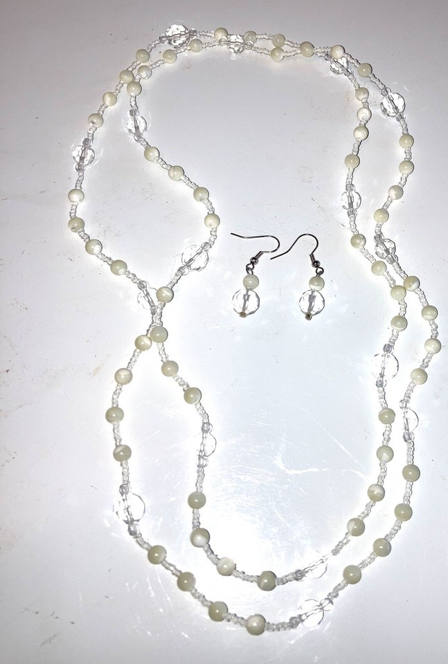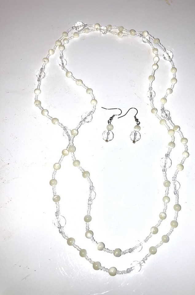 - Necklace 48" long with Earrings set Endless strand Mother of Pearl