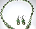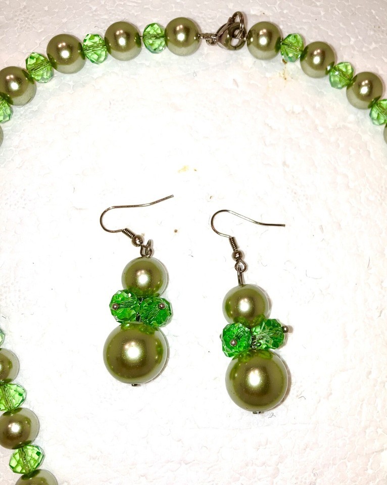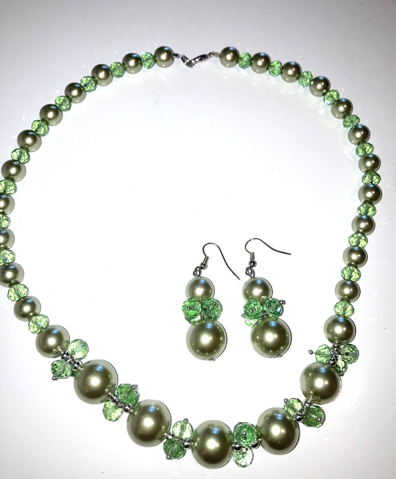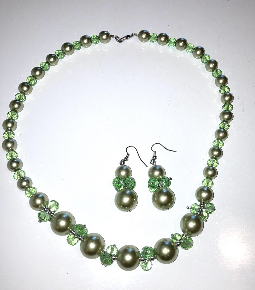 Necklace and earrings Set Glass Pearl and Bead STUNNING MINT GREEN