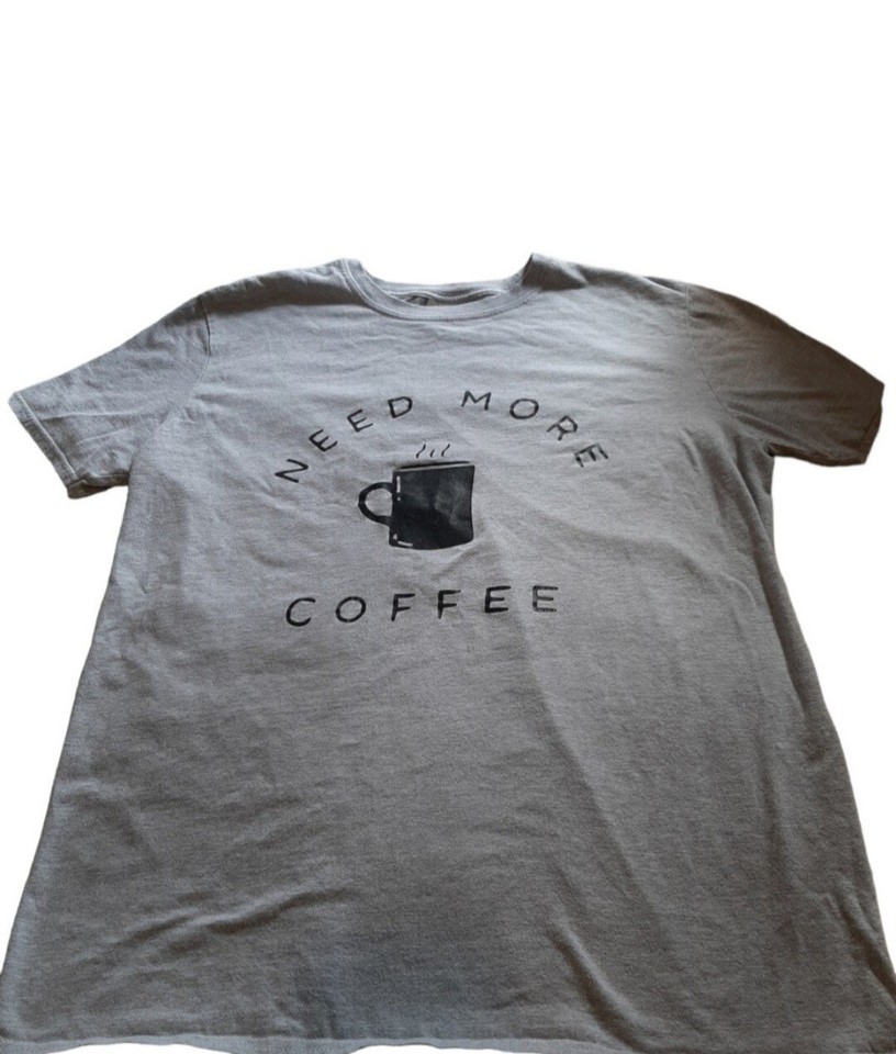 - Need More Coffee Graphic T-Shirt Men Women Unisex Large Gray Funny Casual Tee