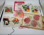 Needlepoint canvas Lot of 8 Floral Partially Stitched Butterfly Bird Fruit Barn