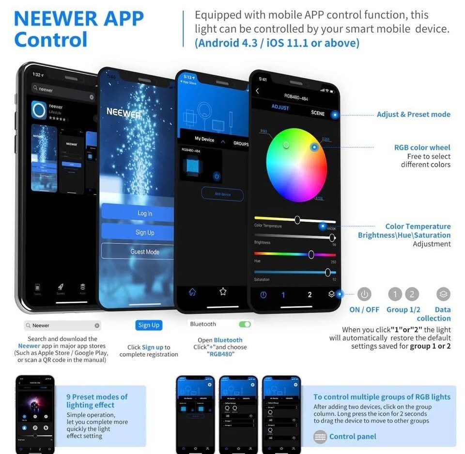- Neewer 3 Pack of 480 RGB Led Light with APP Control, Photography Video Lighting