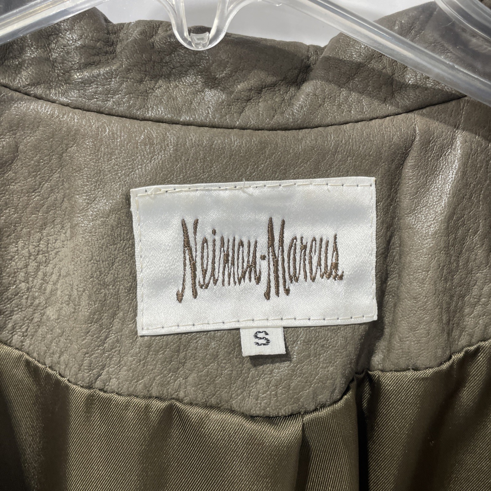 - Neiman Marcus Green Leather Open Jacket Size S Very Good Condition