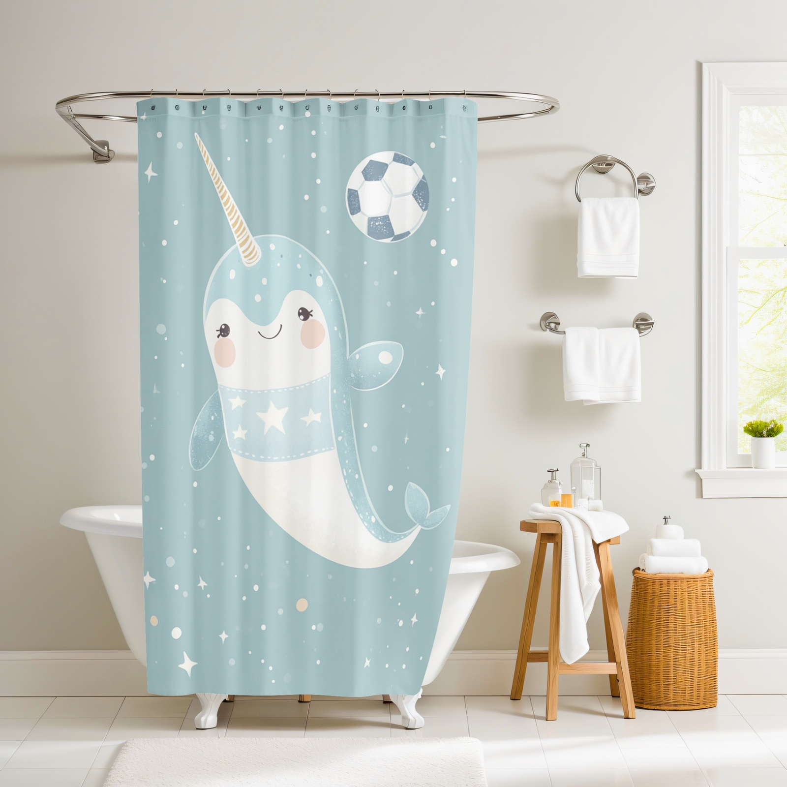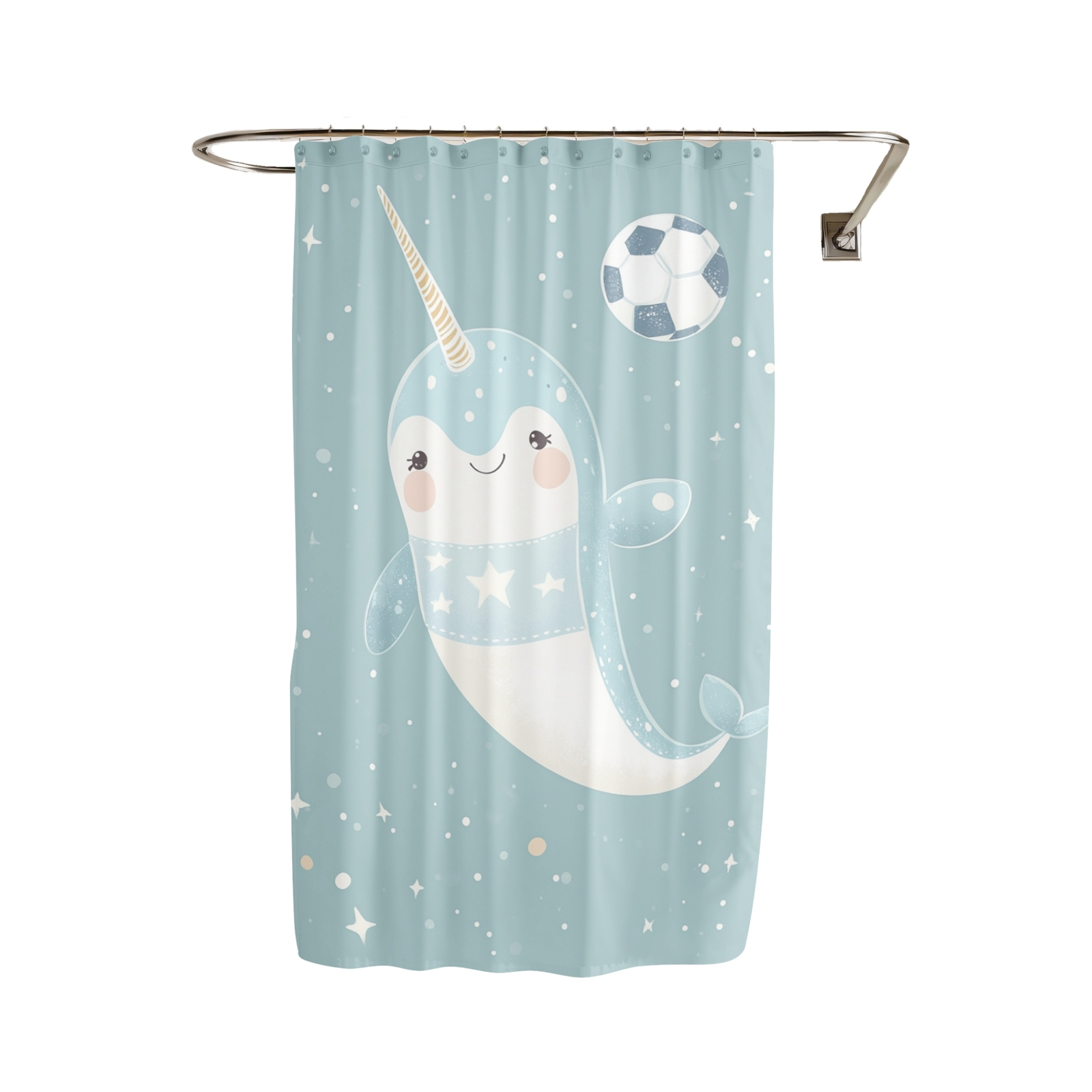 - Nellie the Defender Narwhal Shower Curtain by Dancing Littles Jungle