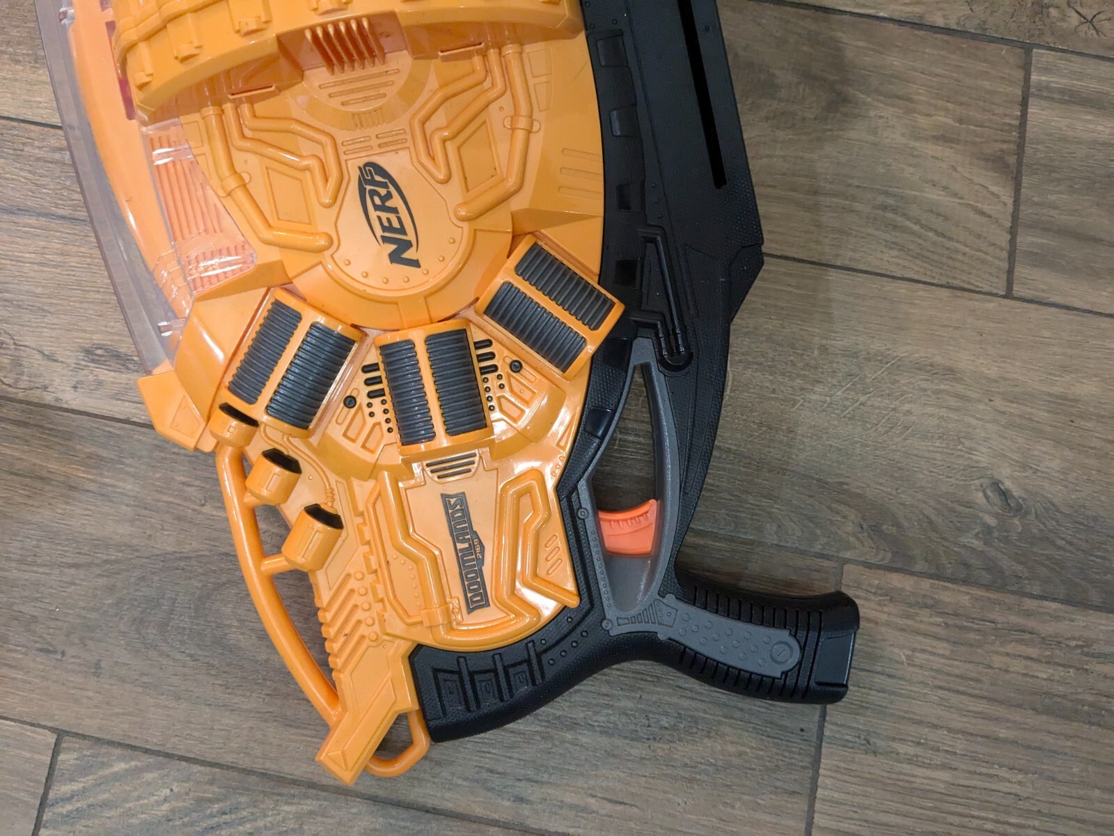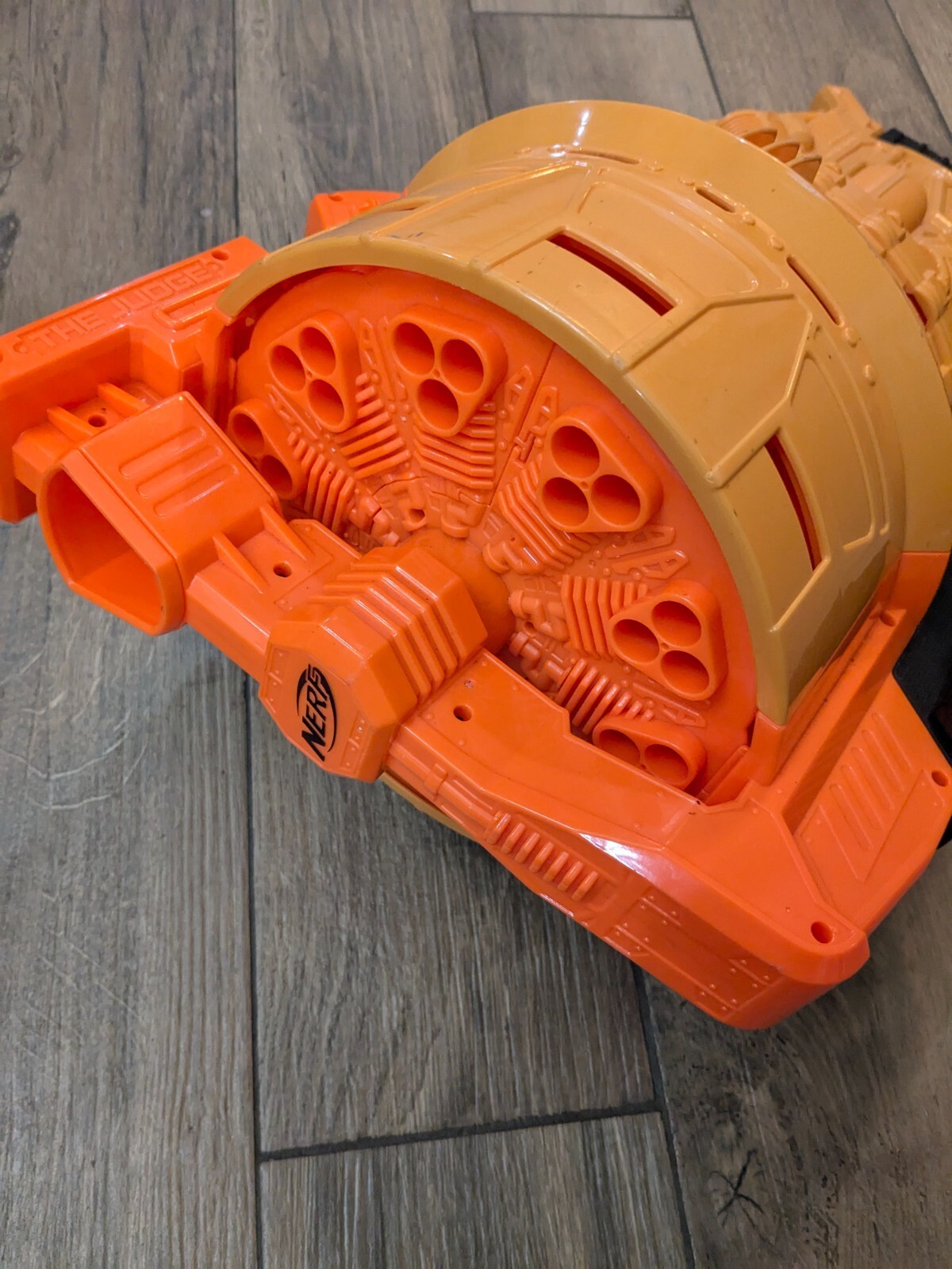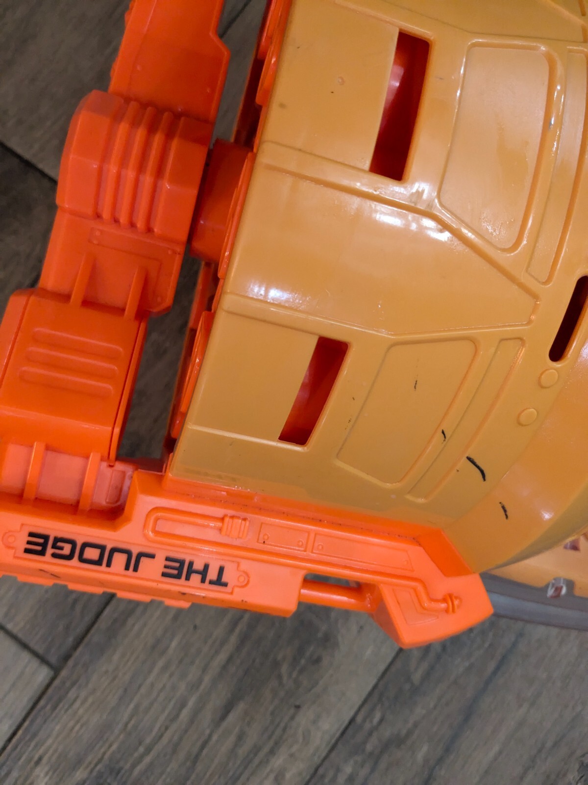 - Nerf Doomlands The Judge Blaster soft dart gun blaster yellow orange huge Hasbro