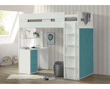- Nerice 3Pcs Twin Loft Bed w/Desk & Wardrobe, White & Teal Finish