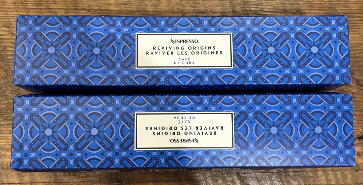 Two sleeves Nespresso Vertuo Cafe De Cuba Reviving Origins Coffee Pods. Each sleeve contains 10 capsules. 20 capsules total.