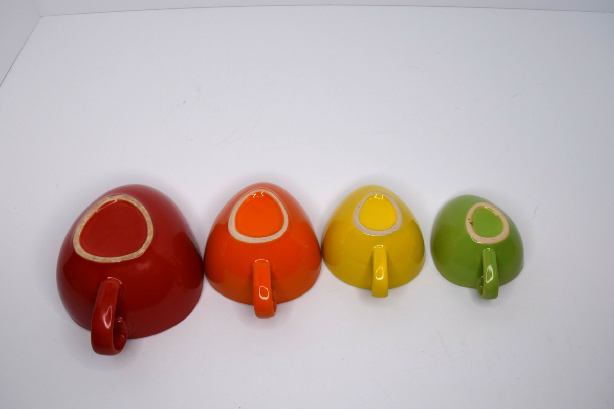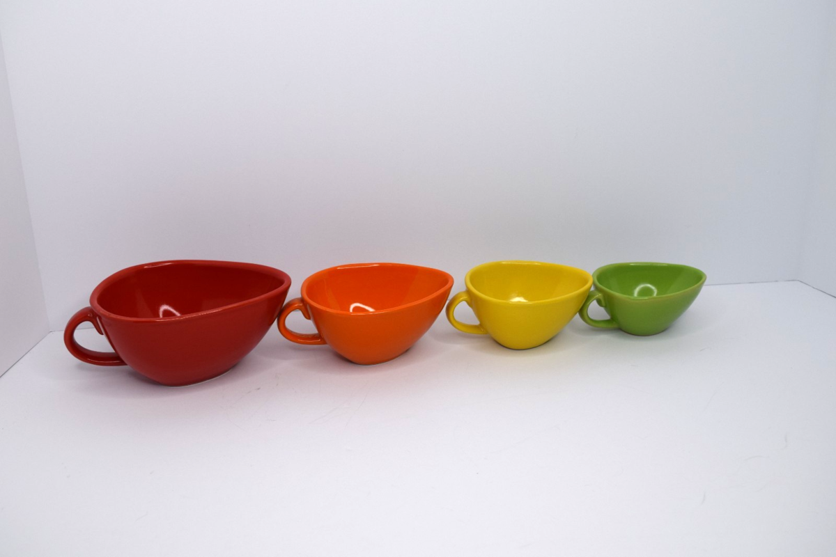 Nesting Ceramic Measuring Cups with Pour Spouts Set of 4. Pre-owned in very good condition. Very light signs of use. No chips or cracks. See all photos for details and condition. Will ship USPS Ground Advantage.
