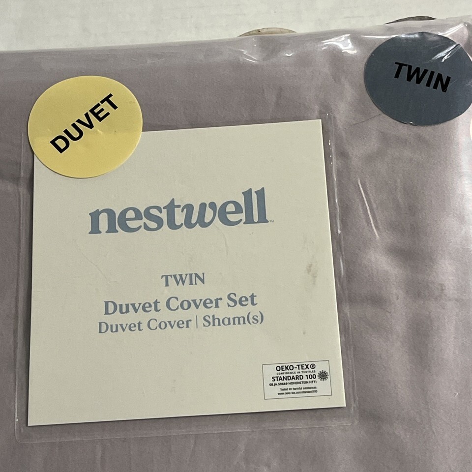 - Nestwell Lilac Marble Light Purple Cotton Sateen Twin Duvet Cover Shams Set