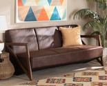 Create a cool, retro lounge with the unique design of the Holitz sofa. Made in Malaysia, this sofa is comprised of a sturdy wood frame padded with plush layers of foam and upholstered in smooth faux leather effect fabric. Angled legs and low seats create a sleek, mid-century modern silhouette that exudes vintage charm. Requiring assembly, the Holitz features walnut brown finished wood legs that lend visual warmth to any public or private setting. Showcasing a distinctive design bursting with old-school character, the Holitz sofa is a transformative addition to any space.