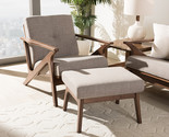 - Netherlands Walnut Wood Light Gray Fabric Tufted Lounge Chair And Ottoman Set
