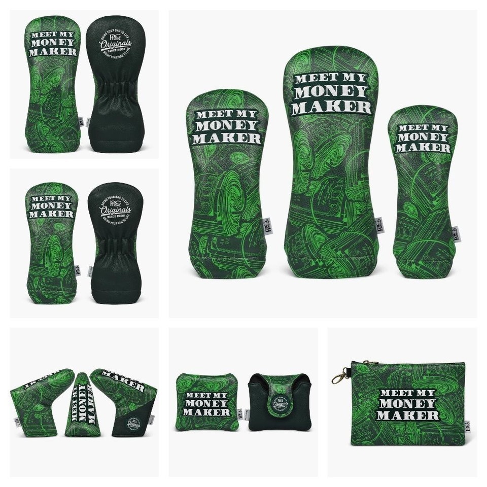 - NEW 2025 PRG GOLF MONEY MAKER. DRIVER FAIRWAY AND PUTTER HEADCOVER. TOTE BAG.