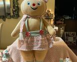 New! LARGE 23" TALL GINGERBREAD GIRL- FREE STANDING. She is absolutely adorable. Plush with detailed embroidered facial features, gingerbread trimming, and wearing pastel jumper dress with big peppermint buttons.