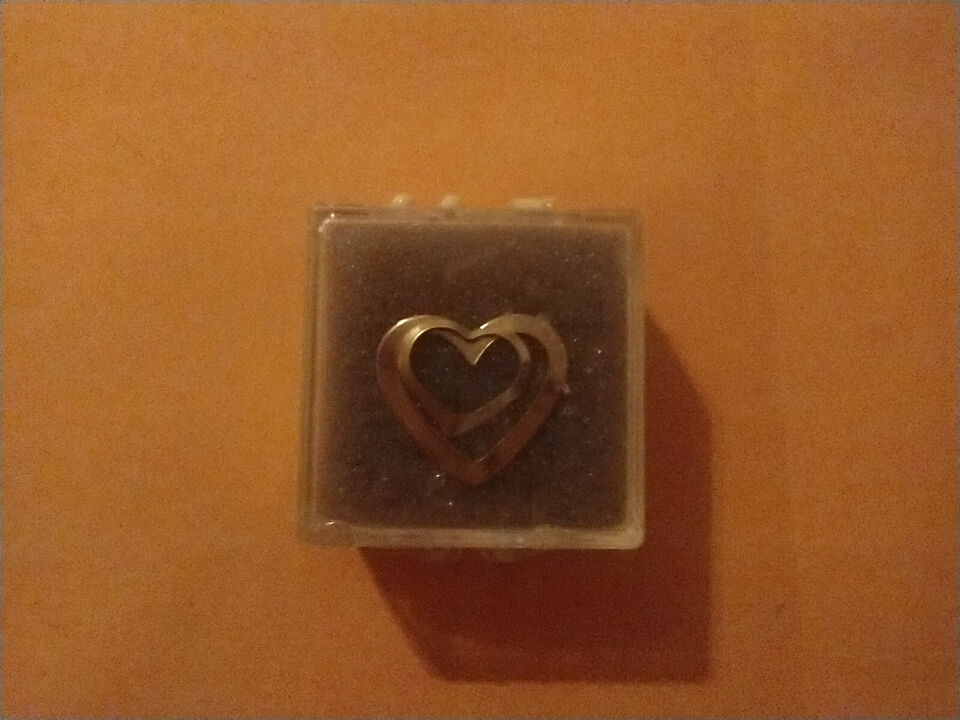 LARGER HEART IS STEEL AND ABOUT 9/16" WIDE AND SMALLER HEART IS NON-METALLIC ( IN CASE), LOOSE HEART IS ABOUT .75" ACROSS, NON-METALLIC AND HAS A 25 ON BACK-25 KARAT GOLD PLATE??. GOT THESE THRU THE MAIL MANY YEARS AGO AND ARE SUPPOSED TO BE GOLD PLATED. CASE ABOUT 1 1/8" SQUARE. YOU WILL GET ALL 3 PICTURED. SOLD AS-IS NO RETURN.