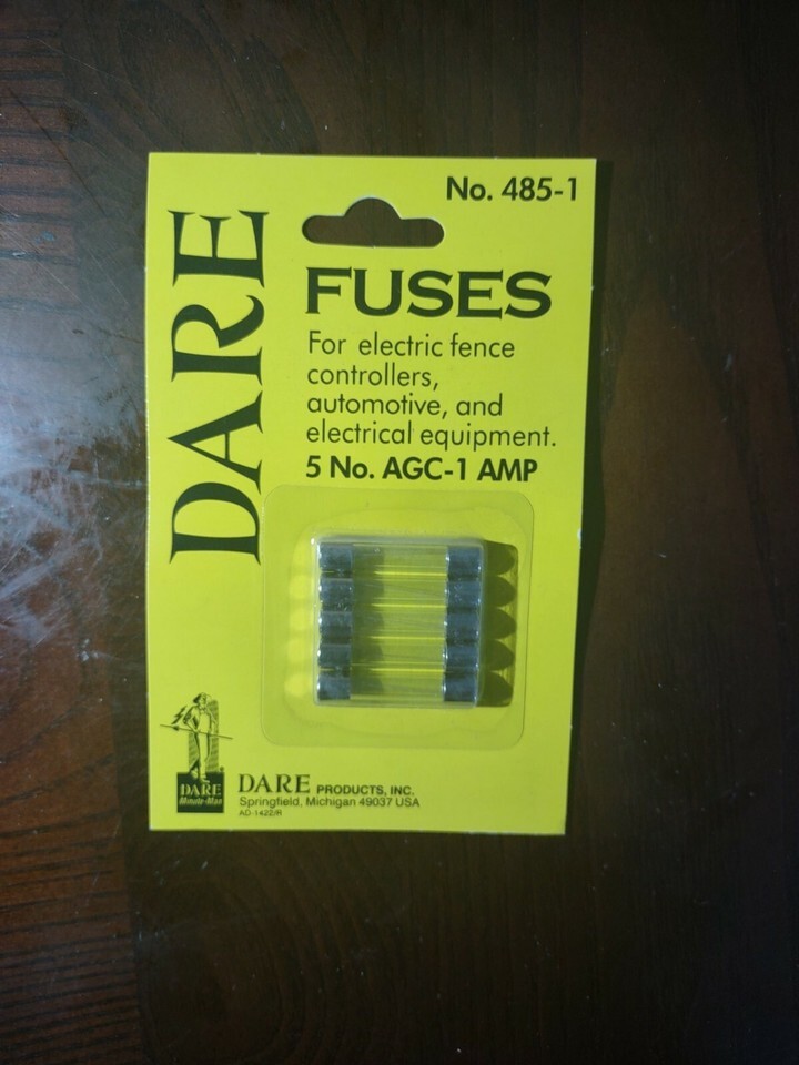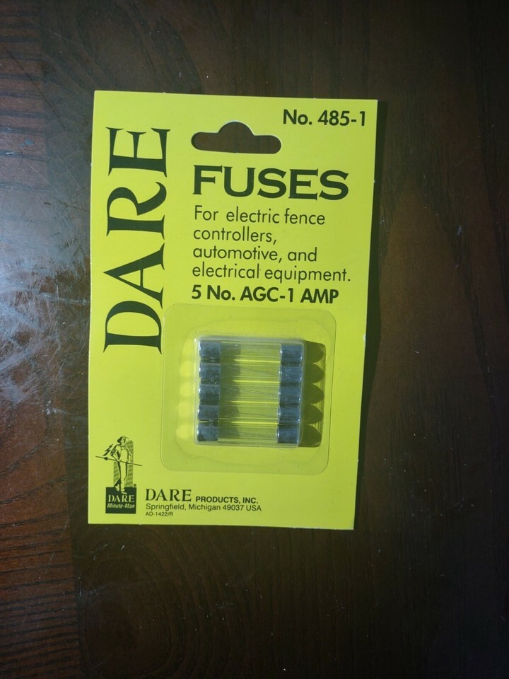 New 5 Pk No. AGC-1 Amp Fuses by Dare # 485-1 for Electric Fence controllers etc.. Inventory box number 5668