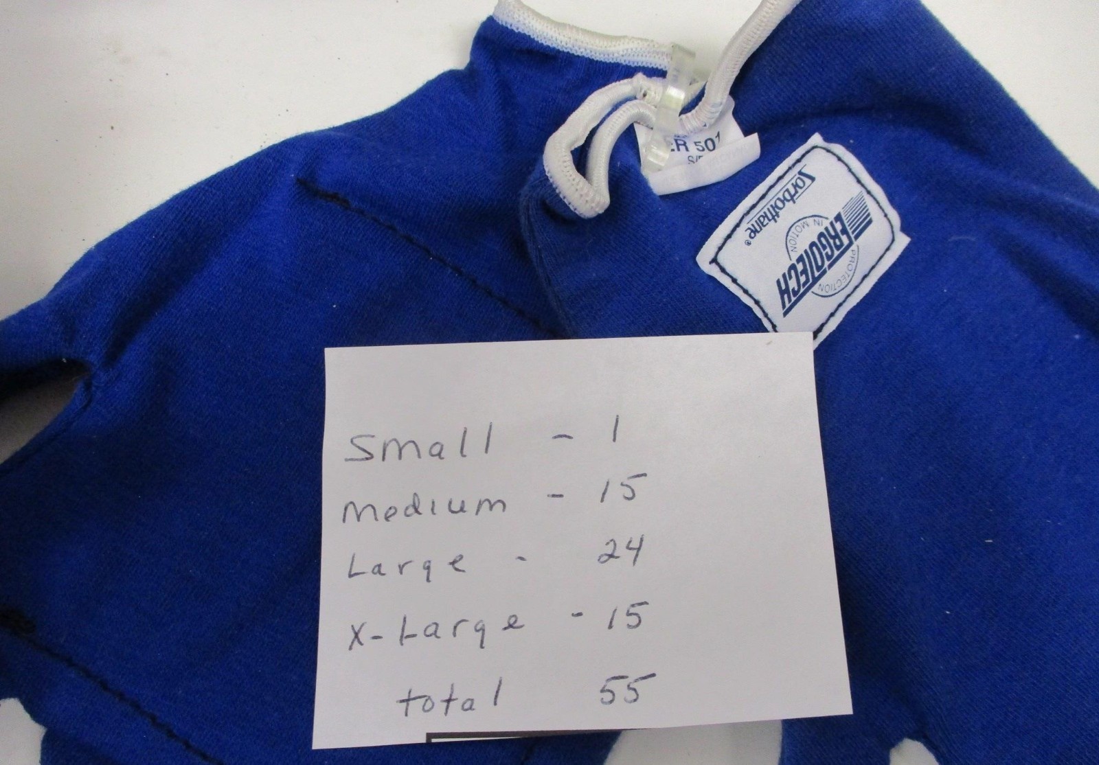 This listing is for a bulk lot of 55 pairs of Ergotech Impact Gloves by Sorbothane. These are blue, half-finger protective gloves, ideal for impact absorption, grip, and comfort. Perfect opportunity for resellers, team outfitting, or workplace use.