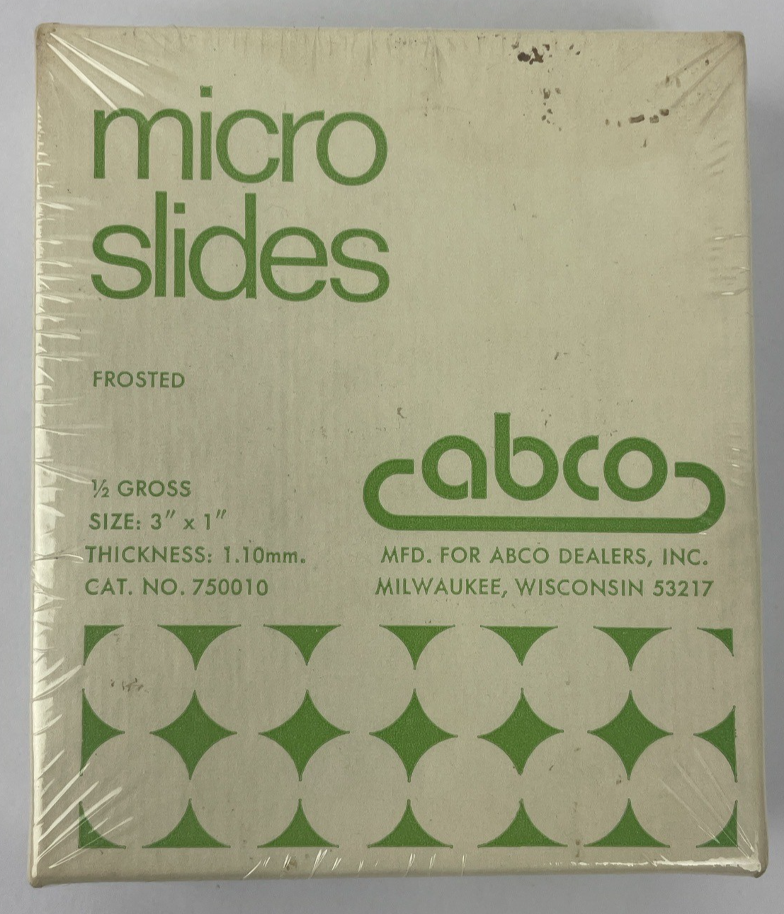 - NEW abco MICRO SLIDES 1/2 GROSS FROSTED SLIDES 3" x 1" 1.10 mm CAT. No. 750010