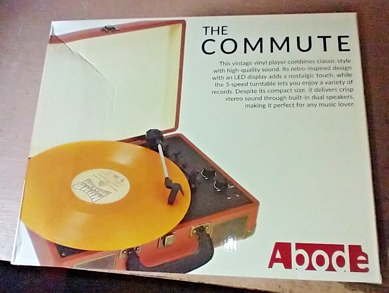 NEW!! ABODE THE COMMUTE RECORD PLAYER, 3-SPEEDS, Built-in Speakers, LP, VINYL