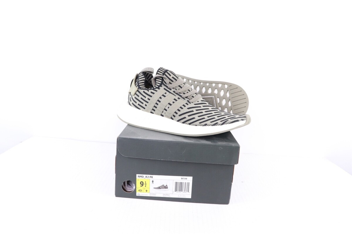 - New Adidas Mens Size 9.5 NMD R2 Primeknit Boost Casual Shoes Trace Cargo BA7198