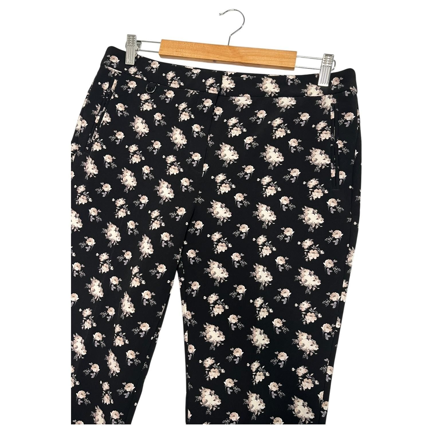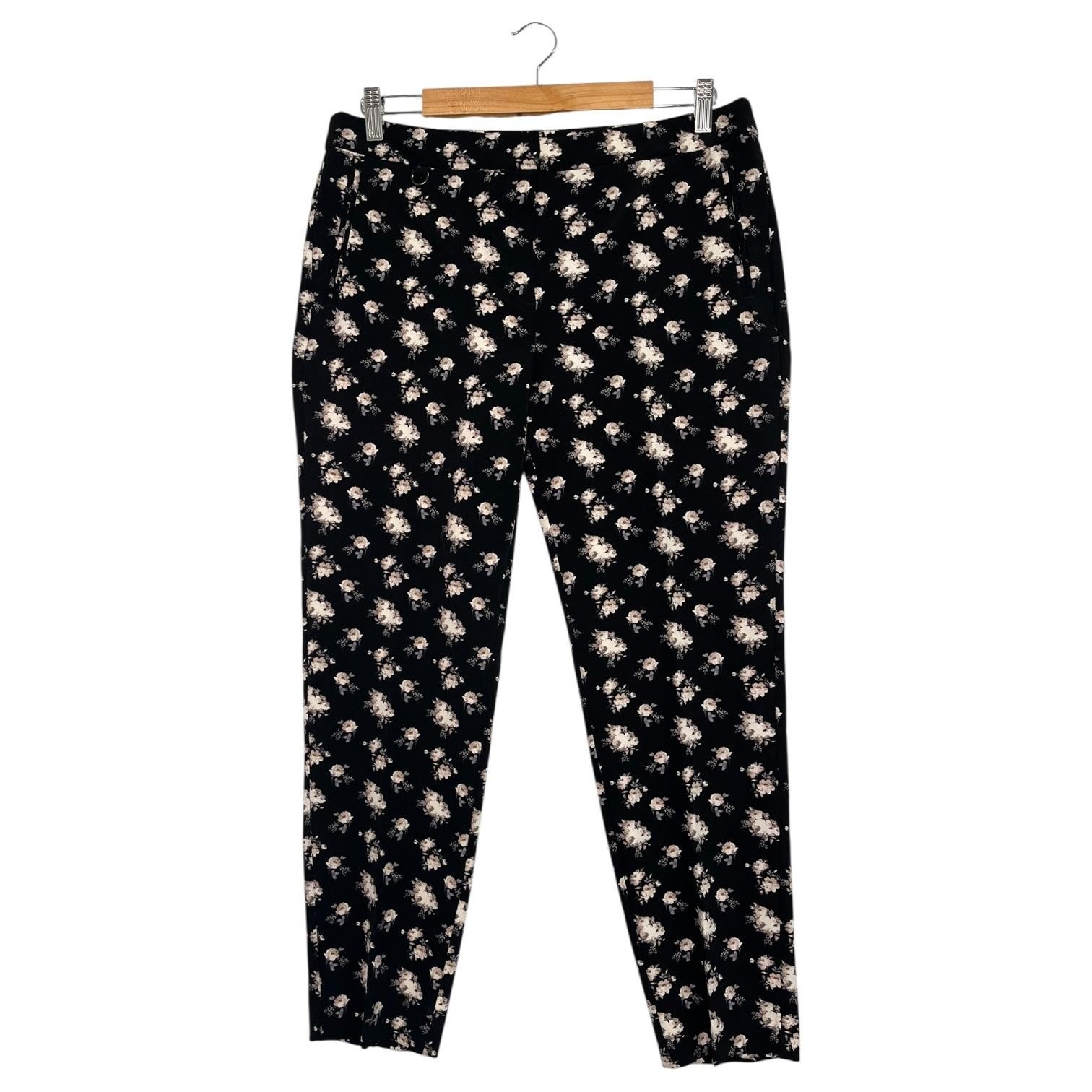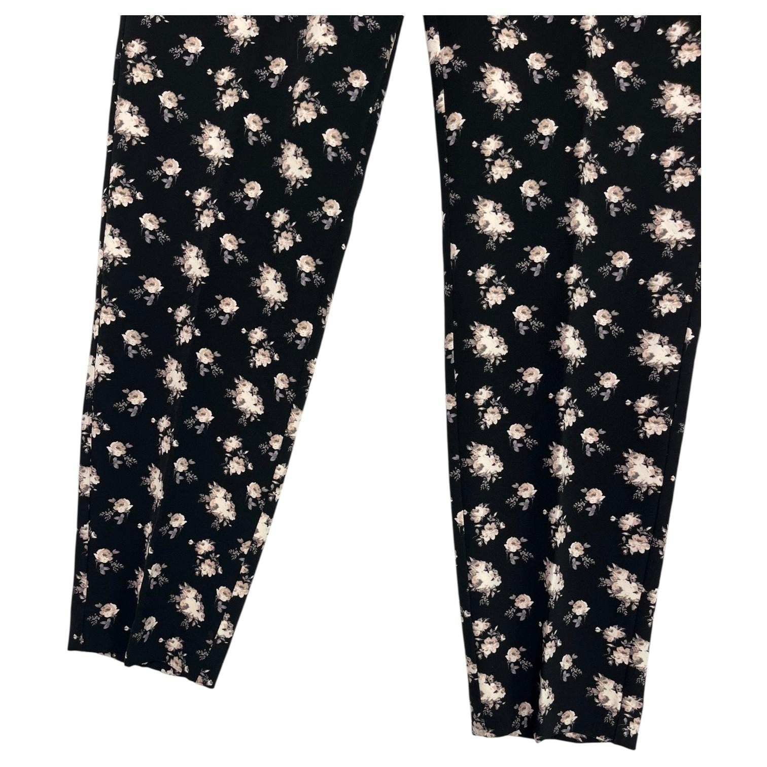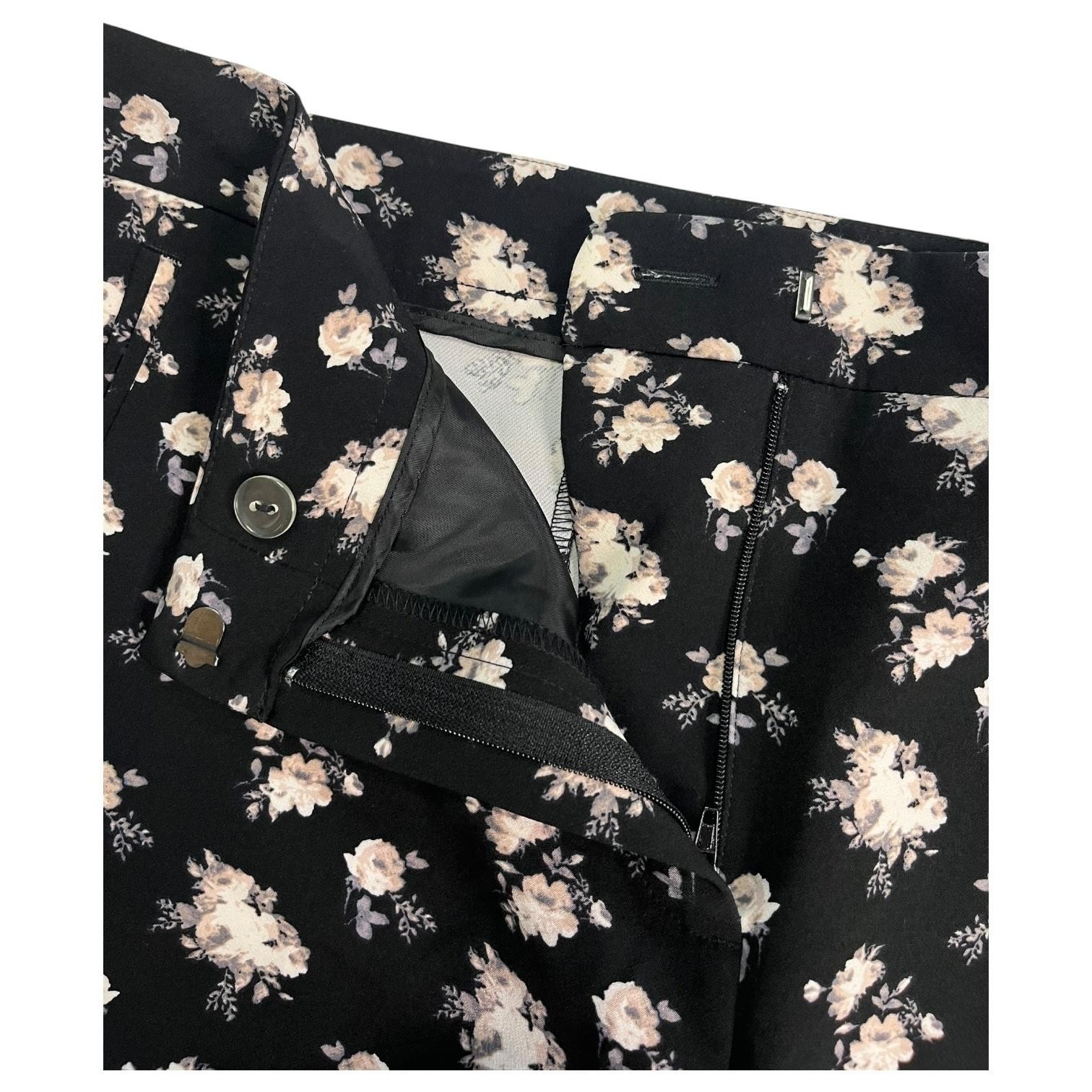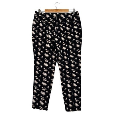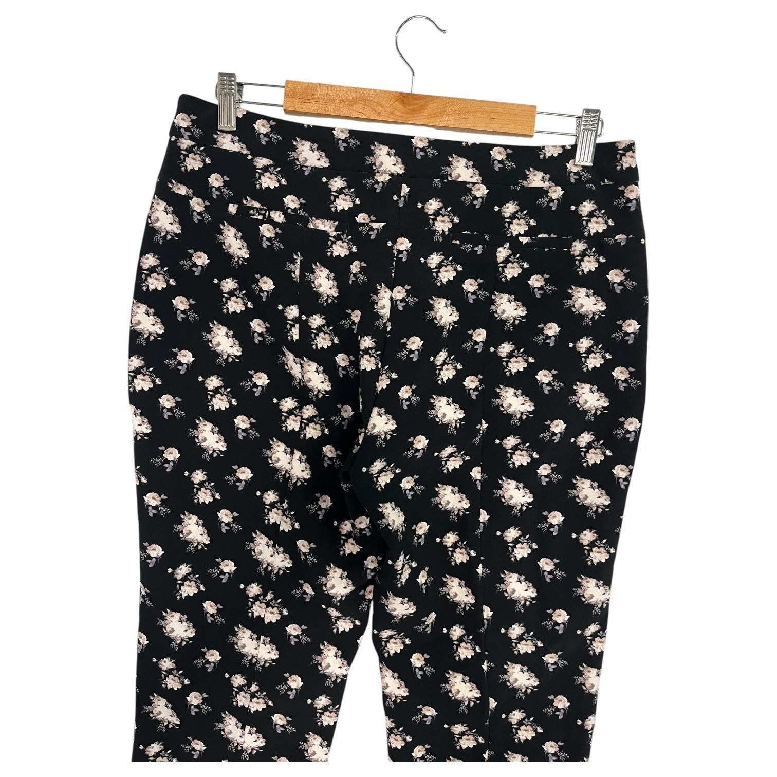 Adrianna Papell Pants Womens Size 12 Black Floral Printed Kate Fit Dress Pants