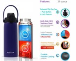 The Aquatix Sporty 21 oz Double Wall Insulated Stainless Steel Water Bottle is perfect for use at the gym, at the office, around your house and anywhere you need to take your beverage of choice with you. Made from durable and sturdy PREMIUM QUALITY, Top Chef 18/8 FOOD GRADE STAINLESS STEEL, this Aquatix Sporty 21 ounce water bottle is a great eco friendly sports bottle. The double wall insulated water bottle is PERFECT for carrying while walking, hiking, camping, use at the gym or just on the go- as it fits MOST car cup holders. No more spills and messes while driving! Ditch those plastic water bottles! GO HEALTHY with this BPA Free, FOOD GRADE stainless steel water bottle that holds a large capacity of liquids 21 fluid ounces and no longer worry about toxins and chemicals leaching into your beverage. Drink crisp, clean, healthy and refreshing drinks from Your Aquatix Water Bottle every time. Just Fill and Go! This sporty bottle features a flip top spout drinking mechanism allows the ease of staying hydrated even while on the go! The flip cap top provides single-handed drinking ability and is perfect for your busy life on the go! Stay hydrated and DRINK MORE WATER with this large capacity 21 ounce water bottle. Double vacuum insulated wall construction contributes to hot teas, soup, coffee or other blends being consistently hot for up to 6 hours. And, for cold water, smoothies, soft drinks, or anything you may need very cold, 24 hours of insulated confidence, guaranteed cold, period! The bottle will not "sweat", meaning it will not create condensation which may leave a "ring" of liquid on your expensive buried walnut side table. Easy to hand wash or clean, NO aftertaste after cleaning. COLD LIQUIDS or HOT LIQUIDS! This is a double wall insulated water bottle that is made of 18/8 food grade stainless steel water bottle! No other bottle has all the features of our Aquatix Sport Bottle!