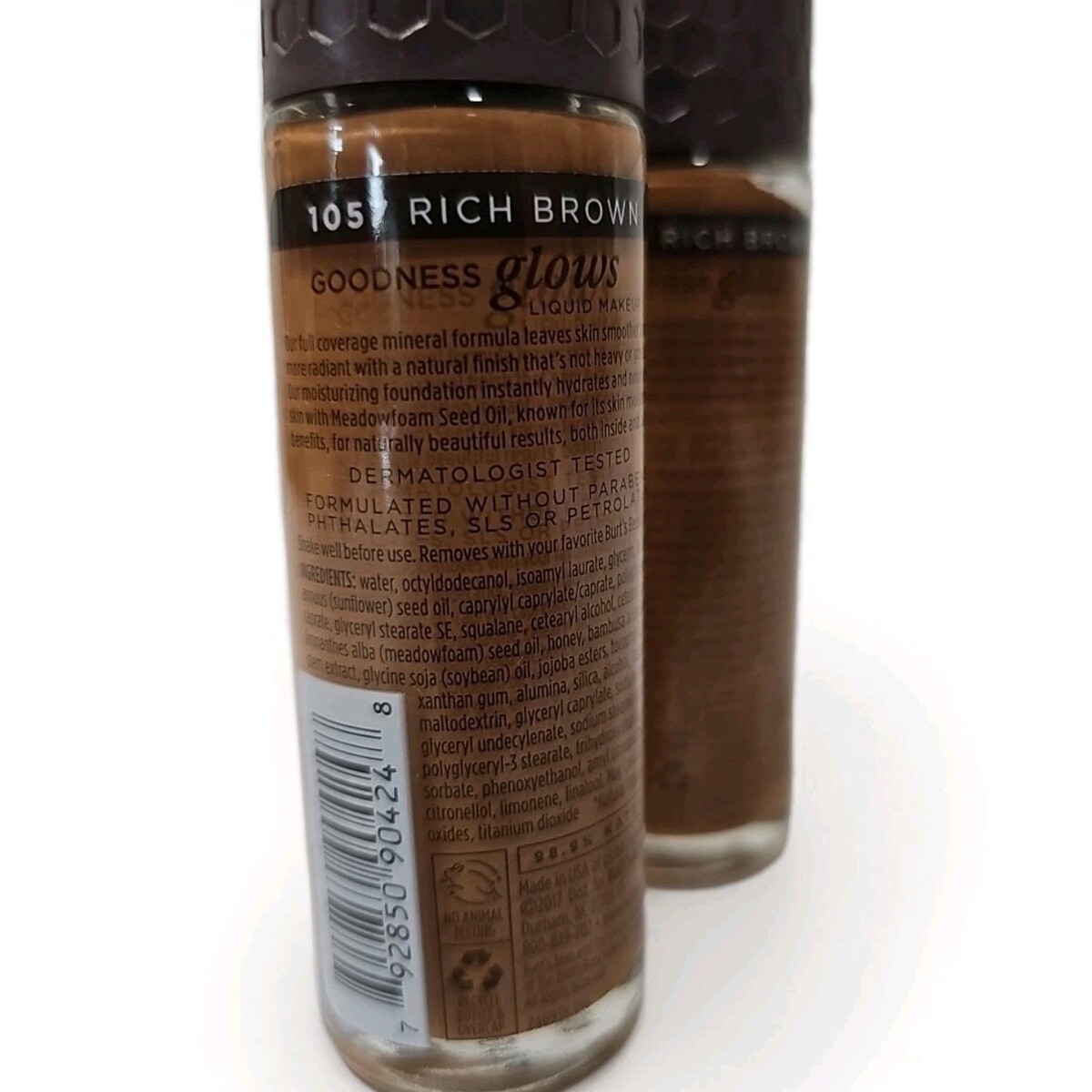 - New BURTS BEES Goodness Glows Liquid Foundation #1057 Rich Brown Lot Of 2 NIB