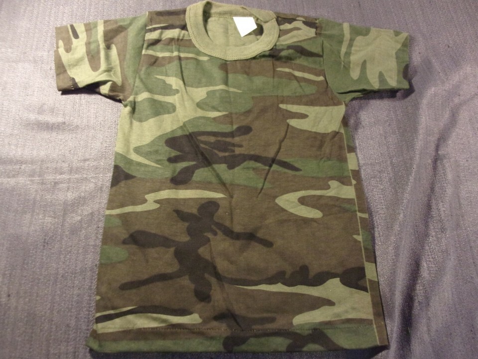 - NEW BDU WOODLAND HOT WEATHER LIGHT FIGHTER T SHIRT YOUTH SMALL CHEST 22