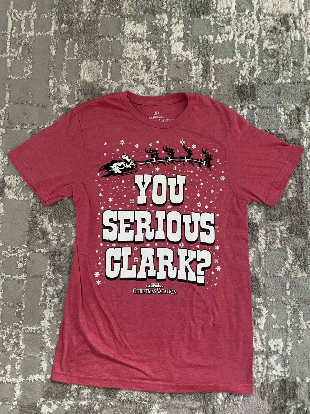 - new CHRISTMAS VACATION Comedy Movie YOU SERIOUS CLARK? women's M red T-Shirt Tee
