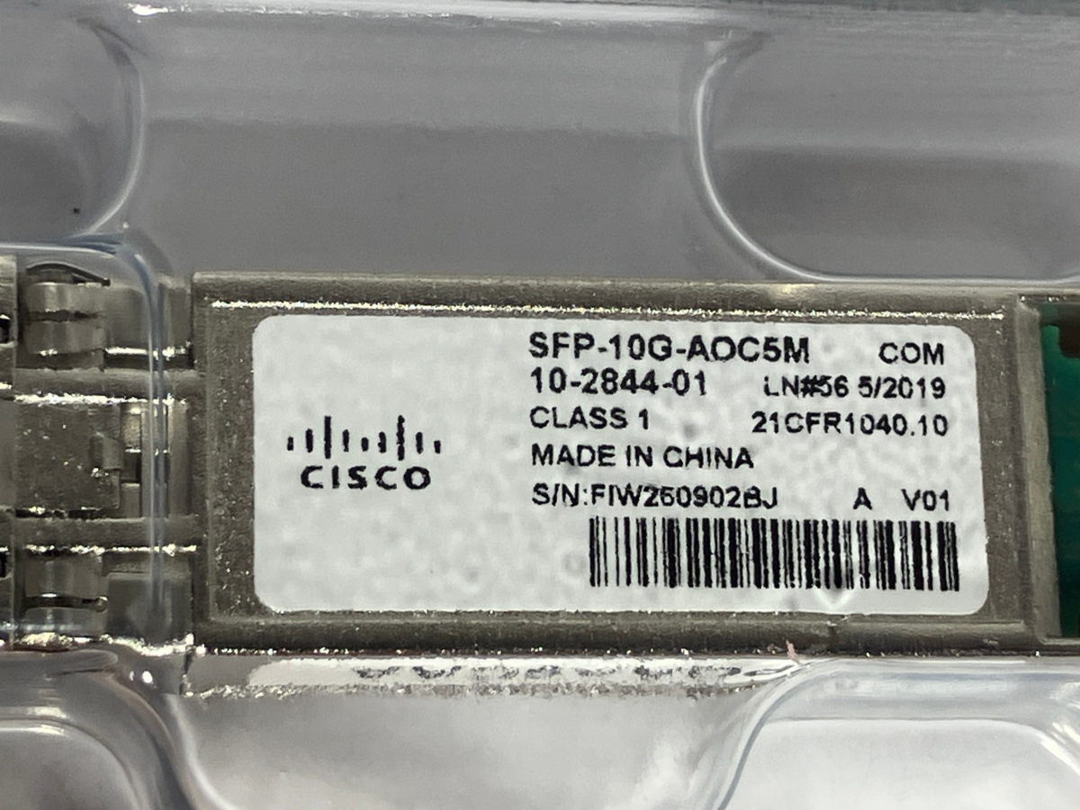 This listing is for a new genuine CISCO SFP-10G-AOC5M 5M 10GBASE ACTIVE OPTICAL SFP 10-2844-01 with Hologram.