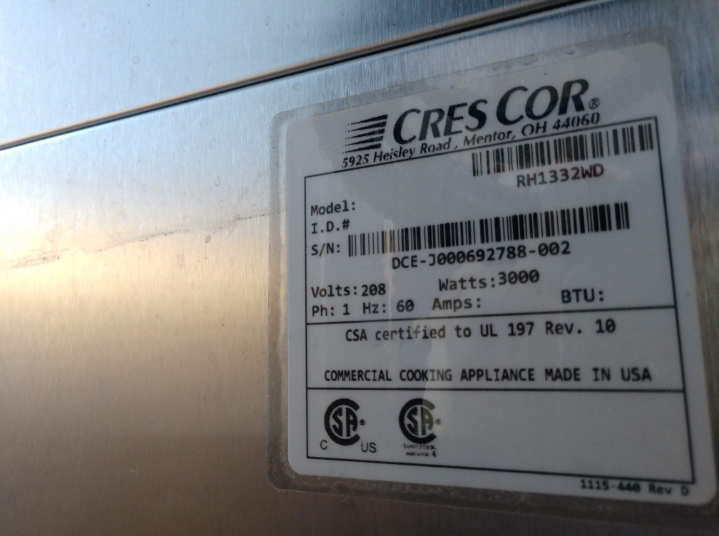 New Cres Cor HC2-UA-11 3/4 Height Insulated Heated Cabinet caned fuel only