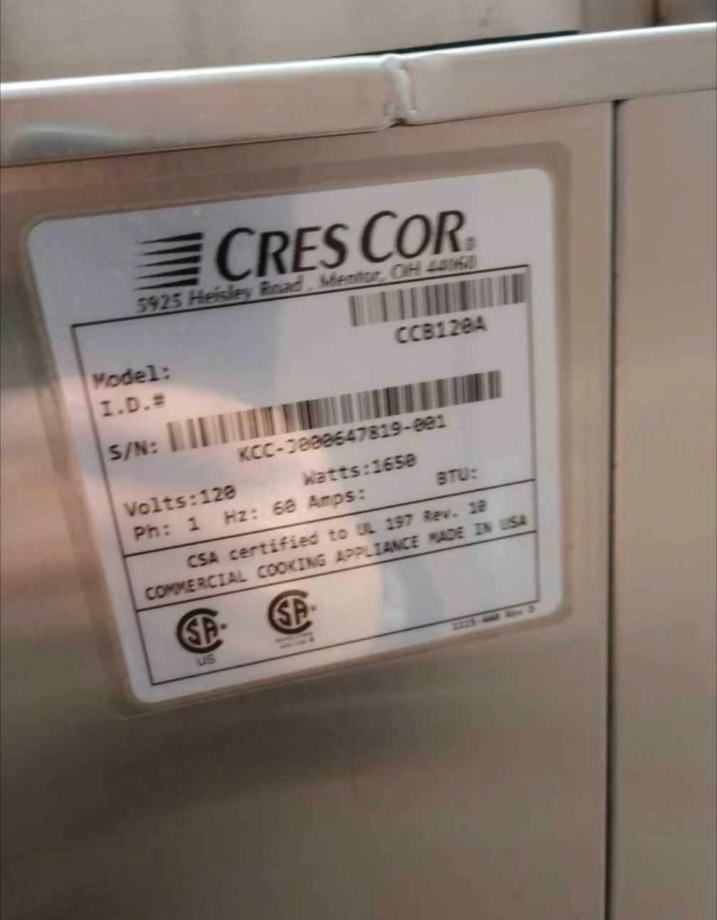 This is a new scratch and dent never used Cres Cor Banquet warming cabinet. It is 120 volt. I can ship this anywhere in the continental USA for $400 flat rate shipping