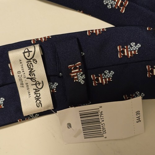 - New Disney Parks Navy Blue Mickey Mouse Americana USA Flag Silk Skinny Tie 60"