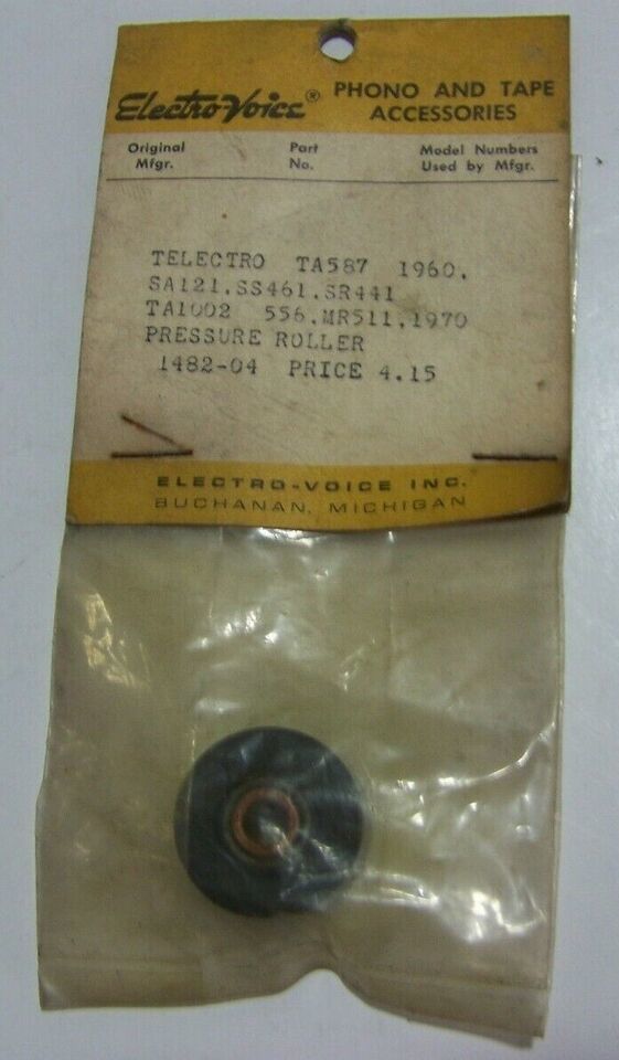 TELECTRO TA587 1960, SA121, SS461, SR441, TA1002 556, MR511, 1970. PRESSURE ROLLER. MAY HAVE CORROSION AND OR HARDENED RUBBER. BOTH I HAVE ARE SIMILAR TO THE ONE PICTURED.