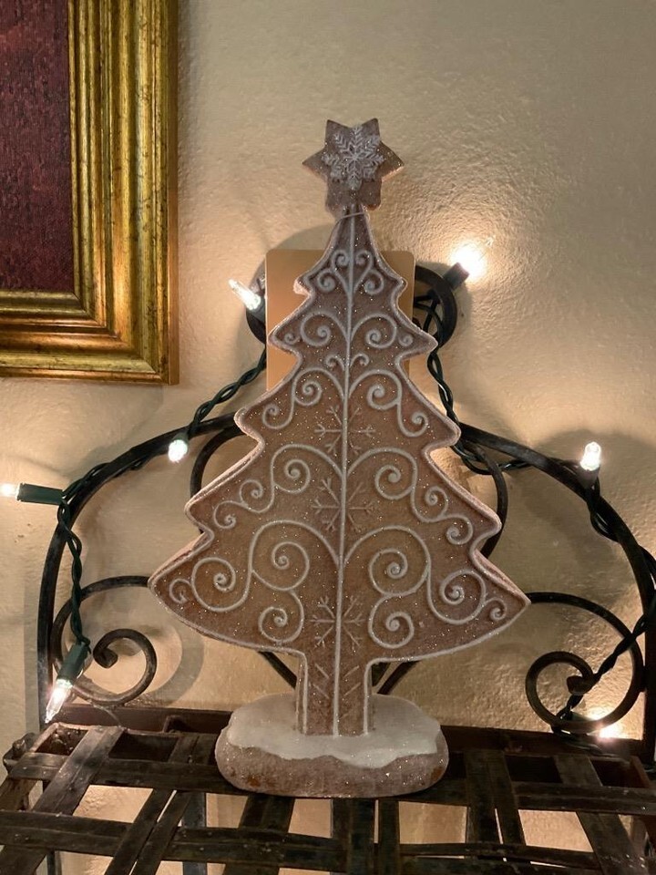 - NEW FROSTED SUGAR GINGERBREAD TREE 10” SNOWFLAKE SCROLL DESIGN